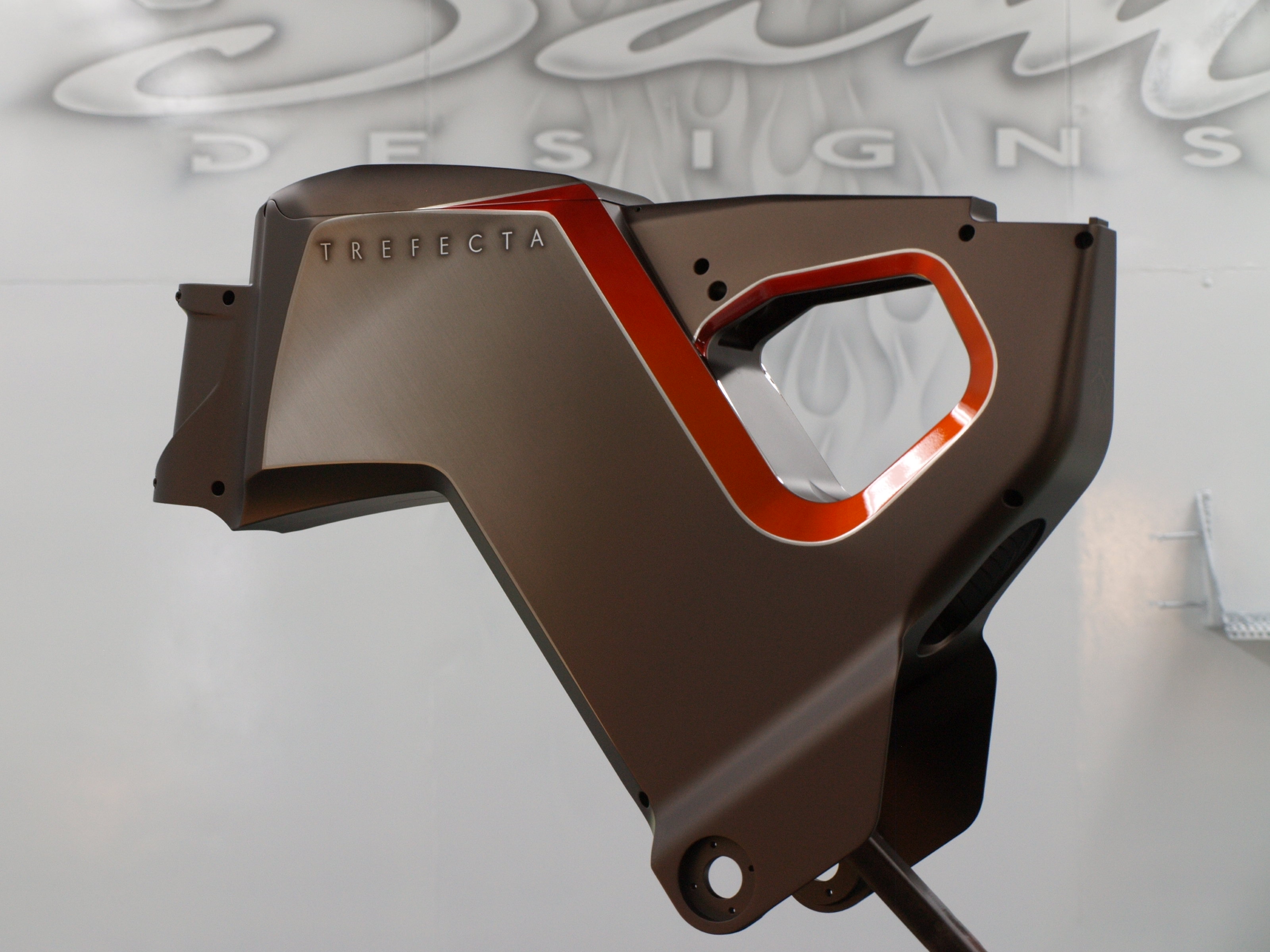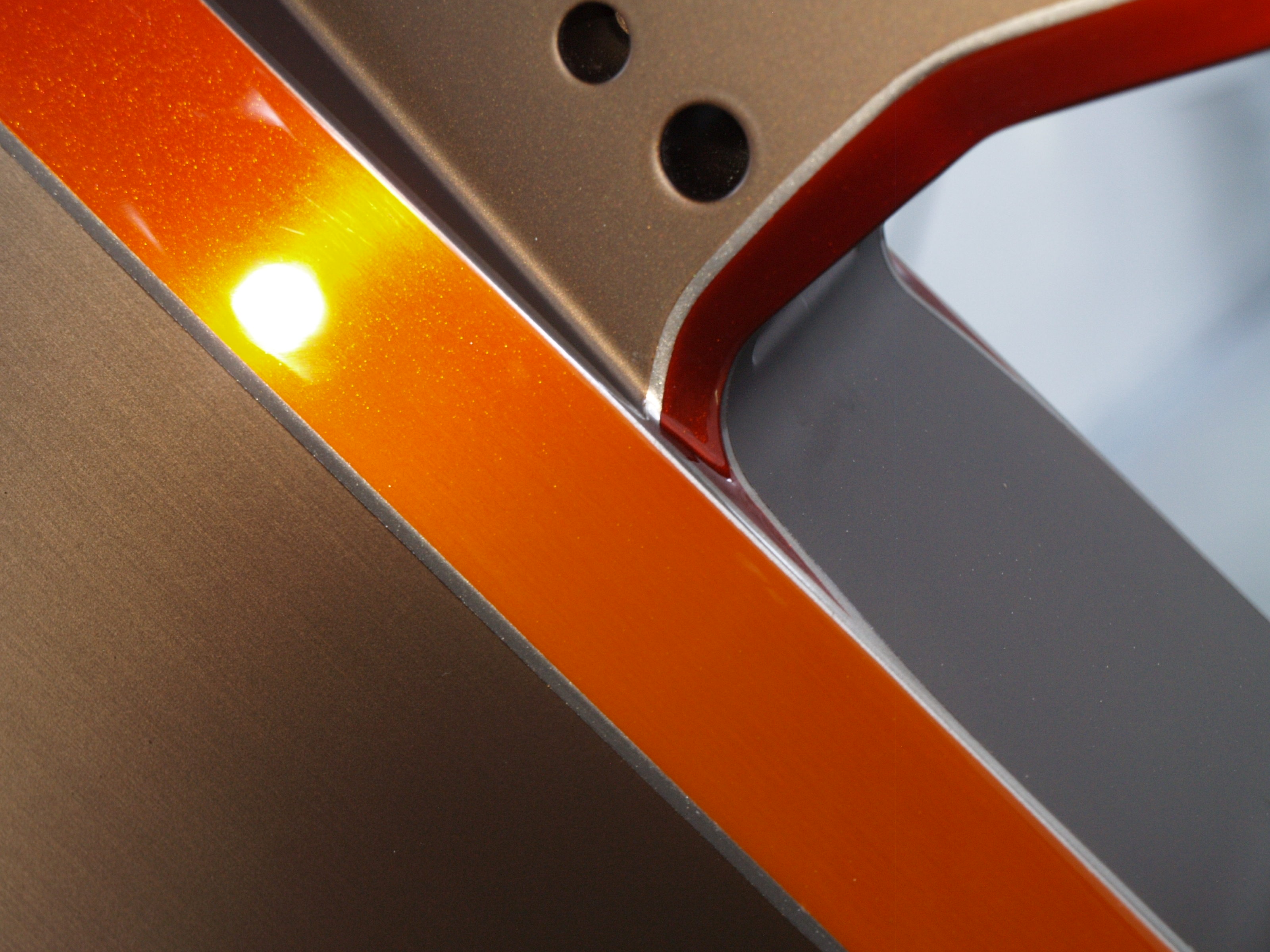Bewerking: Opgeschuurd aluminium met candy paint.